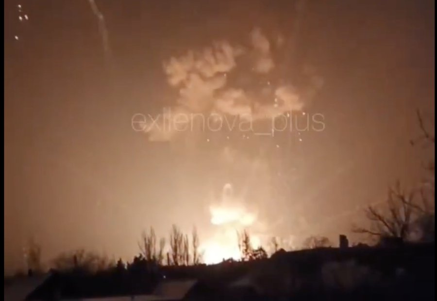 顿涅茨克地区一处俄罗斯弹药库遇袭发生爆炸,一朵巨大的蘑菇云腾空而起。